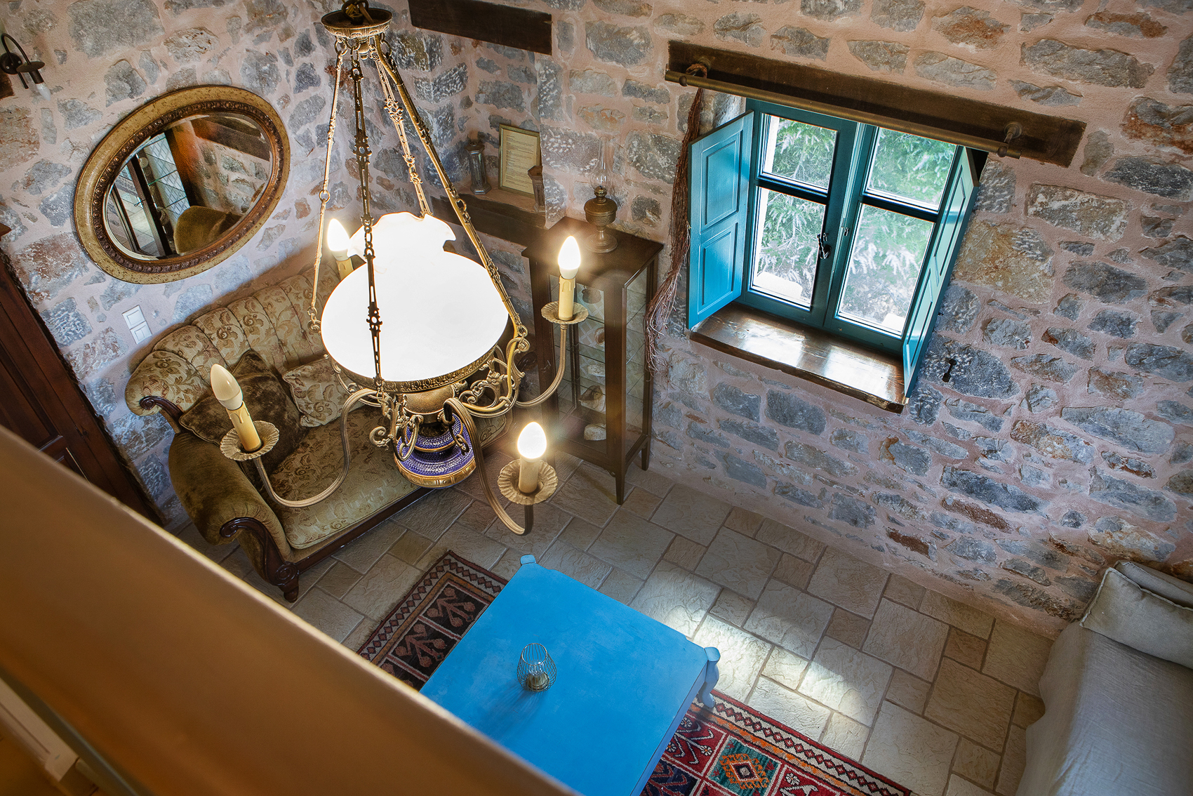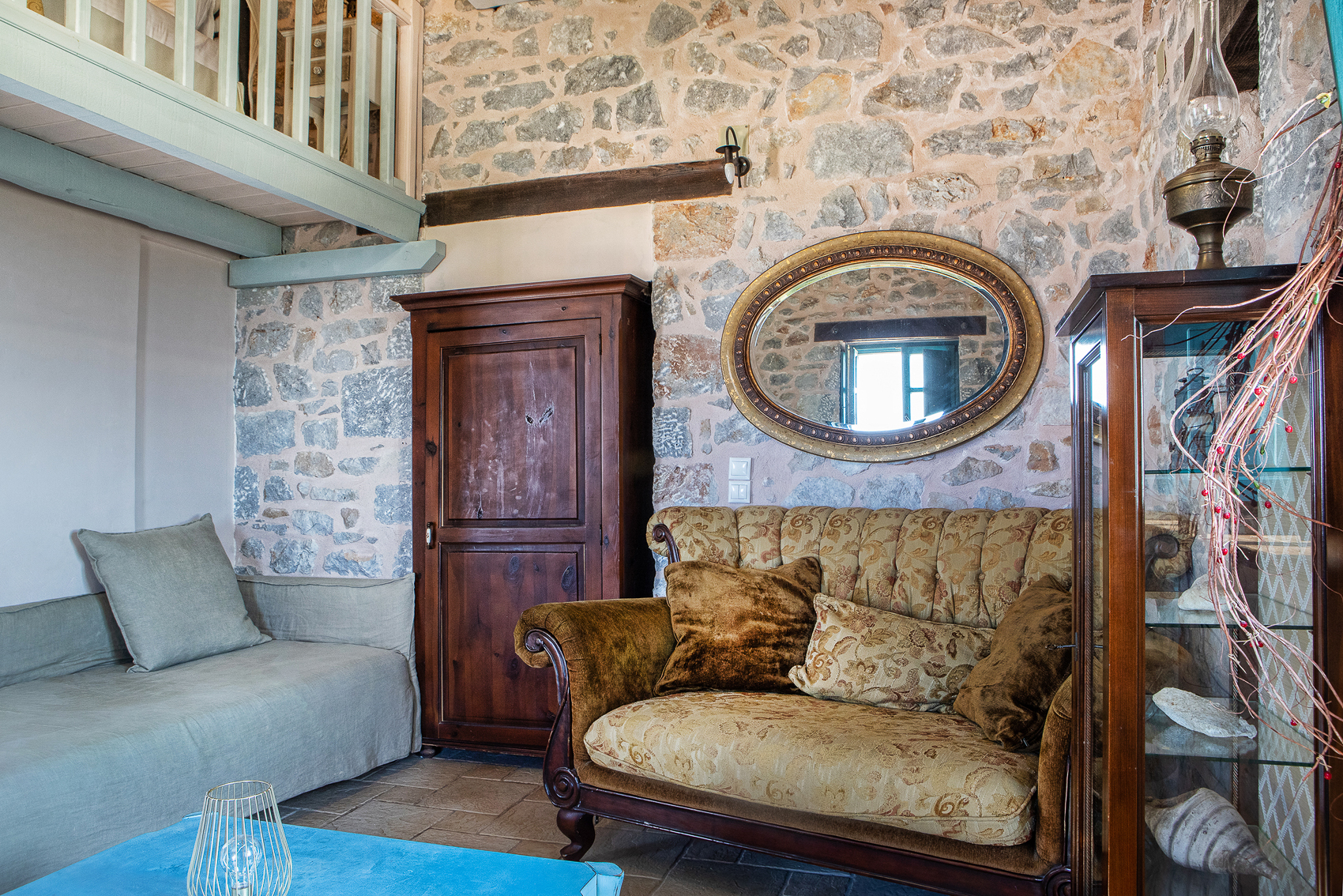 Το καθιστικό σας χαρίζει σε όλη τη διάρκεια της ημέρας τις ανέσεις που χρειάζεστε για να κάνετε τη διαμονή σας ευχάριστη και άνετη. Ο αναπαυτικός καναπές σας περιμένει να απολαύσετε το ποτό σας με συντροφιά το αναμμένο τζάκι που υπάρχει στις περισσότερες σουίτες. Η όμορφη τραπεζαρία, σας δίνει τη δυνατότητα να απολαύσετε ένα ήρεμο και ρομαντικό γεύμα. Με μεγάλη βεράντα, αγναντεύοντας μπροστά μας την Αρεόπολη και τη θάλασσα και από την άλλη τη βουνοκορφή του Ταϋγέτου με το γραφικό χωριό Σωτήρας, γαντζωμένο επάνω του.